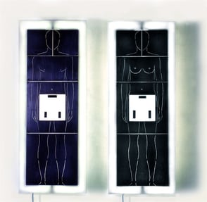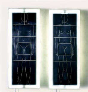 Femminile Maschile, 120×60×10 cm, Material: Plexiglas, Eisenplatten, Leuchtmittel