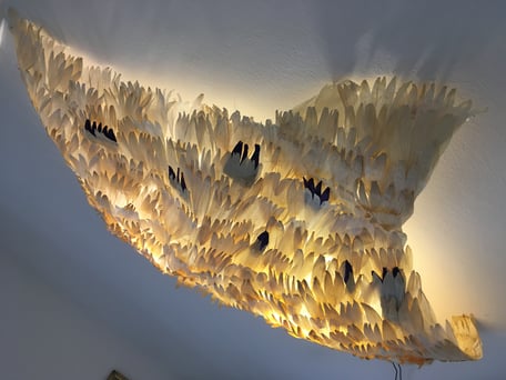 Welle, 180×160×40 cm, Material: Maisblätter, Organza, Leuchtmittel